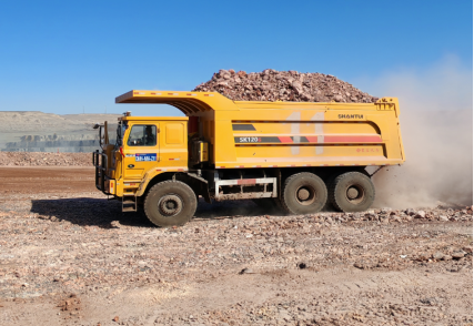 面对新疆极端气候条件(夏季最高温度可达45℃,冬季最低温度低至-30℃)以及复杂的地形挑战(包括1.5公里上坡路段、139公里平直路段和1.2公里下坡路段,最大坡度达5%-8%),山推SK120A-G以其卓越性能脱颖而出。这款基于120吨手动挡升级而成的自动挡车型,装备了汉德40吨级高可靠重载矿用桥与进口艾里逊4800大扭矩变速箱,不仅动力强劲而且爬坡能力出色,非常适合这种恶劣工况下的应用需求。