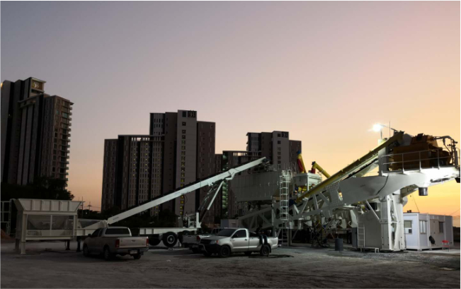 E3Y-100自架设移动式混凝土搅拌站应用于泰国新区住宅项目建设