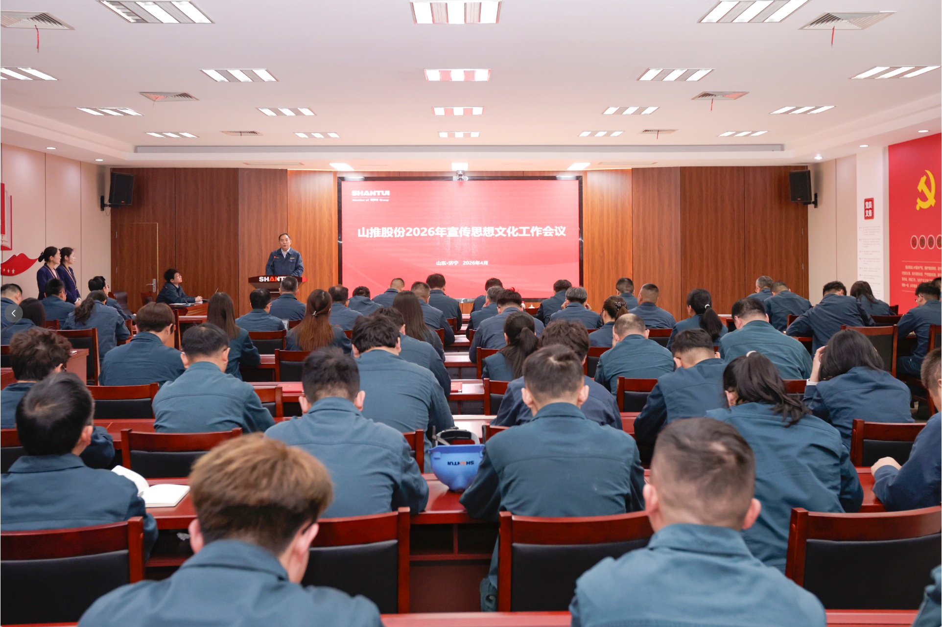 4月10日,山推在党校培训室召开2026年宣传思想文化工作会议,总结经验、表彰先进、部署任务,公司党委副书记马景波,党委委员、纪委书记宋茂兵出席会议并颁奖。