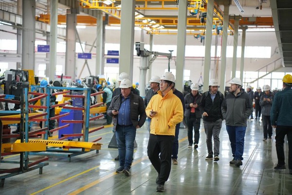 在工作人员的引导下,客户们依次参观了挖掘机装配车间与金结车间。整洁有序的生产现场、自动化的装配流水线、严谨高效的工艺流程,让客户们深切体会到山推在制造体系上的精益追求与品质保障。面对一台台即将交付的挖掘机,客户们频频驻足,认真了解各机型的设计结构与生产工艺,并对山推产品出色的稳定性与可靠性给予高度评价。