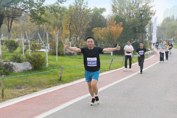 集结列阵 鸣笛开跑在鸣笛发令后,健康跑正式开跑!秋风拂面,脚步铿锵,队员们你追我赶、意气风发,成为湖畔一道流动的风景线。