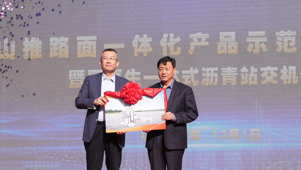 12月1日,“科技赋能 装备美好”山推路面一体化产品示范基地揭幕暨LR5030-5N原再生一体式沥青站交付仪式在济南钢城区顺利举行。山推股份副总经理韩保辉、济南市钢城区有关部门领导、客户方代表及来自全国的合作伙伴与员工代表等百余人出席此次活动,共同见证这一重要时刻。