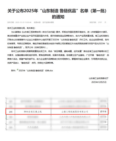 近日,山东省工业和信息化厅正式公布2025年第一批“山东制造·鲁链优品”名单。山东重工集团旗下山推股份自主研发的DH46全液压推土机凭借领先的技术实力与卓越的产品性能成功入选。