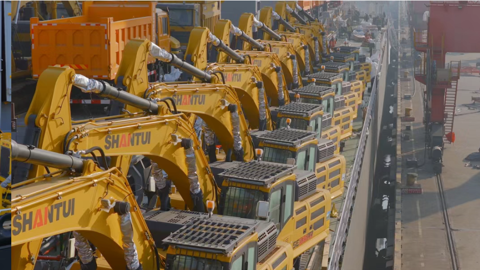 山推成功中标非洲国家性综合设备供应项目,推土机、挖掘机、装载机、平地机、压路机及挖掘装载机等百余台多品类设备装船发运。