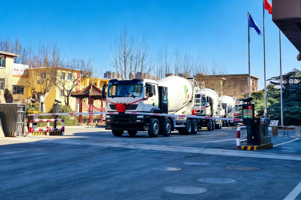 近日,山推纯电搅拌车整齐列队,正式启程发往河北某工地。这批“绿色先锋”将以零排放、低能耗、高性能的突出优势,为当地工程建设提供清洁高效的混凝土运输解决方案。