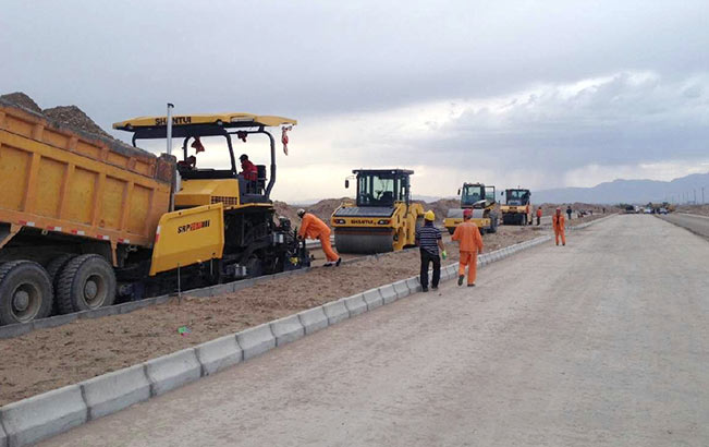 山推成套道路设备在西北地区施工