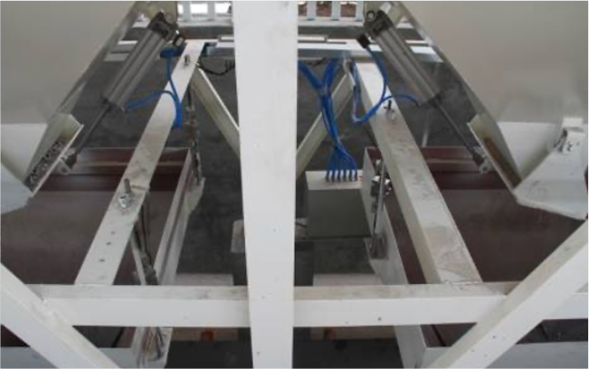 (1)骨料配料系统卸料门可调节料流大小提高计量精度,并获得实用新型专利。专利号:ZL201420145899.1