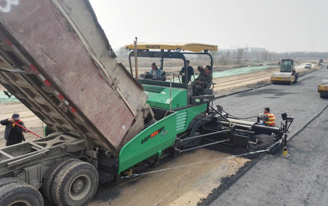 2019年3月,山推摊铺机、压路机参与省内某市政公路工程建设,并负责水稳层以及面层施工。在施工过程中采用SRP90S-PLUS、SRP95M-PLUS双机连铺,超高效率完成摊铺作业,缩短施工工期,并赢得施工方与客户的高度认可。