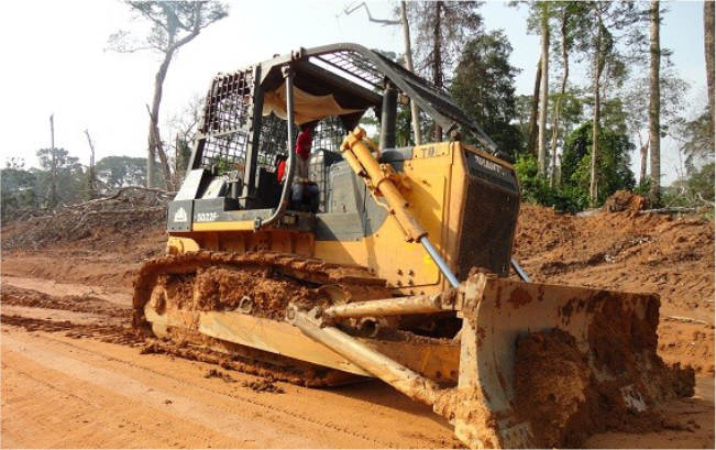 SD22F推土机作业于非洲某森林,承担道路清障,大型木材托运等工作,SD22F伐木版推土机,增加伐木棚提升安全性,后配置机械绞车,牵引力强劲,让施工更简单。