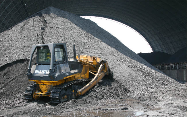 SD23C推土机作业东部城市某电厂,负责煤炭的推运、堆积工作,因作业高效稳定受到用户喜爱。SD23C配置进口特博预滤器,选用加大水箱,标配8.3m³超大容量推煤铲,是电厂、港口等松散物料的施工作业的首选。