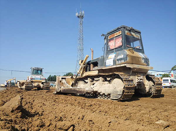 施工方成套使用山推系列设备,推土机、压路机、平地机等进行平整压实作业,山推设备以动力足、质量好、效率高、故障率低赢得该工地称赞,赞誉设备的压实性能和高出勤。