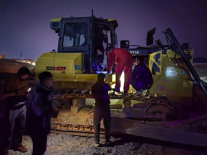通过对现场设备进行全方位地排查,服务团队用最短的时间摸清了现场设备的现状。于是,山推专家团队马上联系当地的服务人员,通过山推完善的服务体系,火速调拨各类资源。在等待的时间里,山推专家团队一直守候在客户工地,争分夺秒、彻夜不休的服务工作。同时为全力确保项目施工的顺利进行,山推专门成立了针对该项目的专项服务小组,包括专家和服务人员在内的成员,均驻守施工现场,为客户提供保姆式服务。