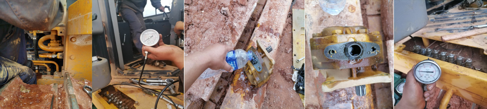 检测齿轮泵的内泄在工地现场多采用灌注测试法:将泵拆除置于平整场地→吸油口向上灌入柴油→观察液面下降速度,如短时间内液面下降较快;说明泵存在内泄。同样可采用压力表测量,但是需要区分系统溢流阀带来的问题。