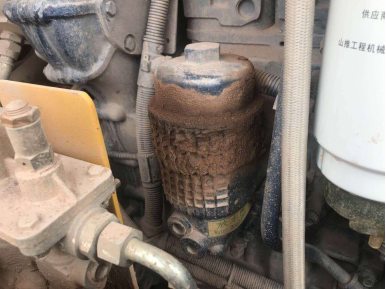 2、更换发动机柴油滤芯(图3),柴油滤芯是为一次性使用的,严禁清洗和反复使用。柴油滤芯安装时,密封圈上涂抹少量润滑油,用手拧紧直到密封垫与滤芯盖头相接触为止,然后再拧紧半圈到3/4圈,且勿拧太紧,导致滤芯及密封圈变形漏油。