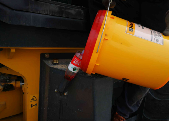 先将压路机停放在平坦的地面上,处于水平位置。(注意:不要在冷车状态下进行换油,将发动机运行10分钟最佳,以增加机油的流动性)