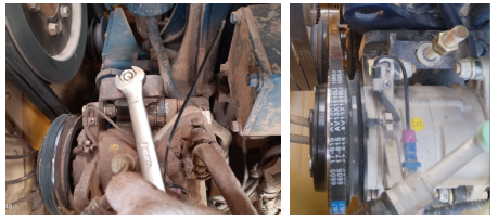 答:压缩机皮带打滑导致的吱吱响,一般是因为皮带涨紧不足引起的,可以通过调整皮带涨紧度解决。如有必要对打滑严重的皮带进行更换。(务必发动机熄火后进行此操作)